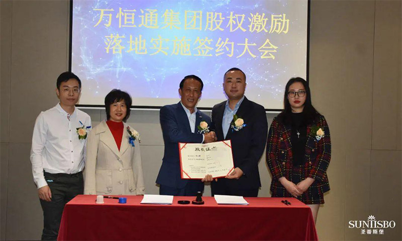ballbet贝博·(中国)集团执行董事及法人代表王浩基先生正式为第一期六位虚拟受限股股东授予荣誉证书并签订股权分配协议。